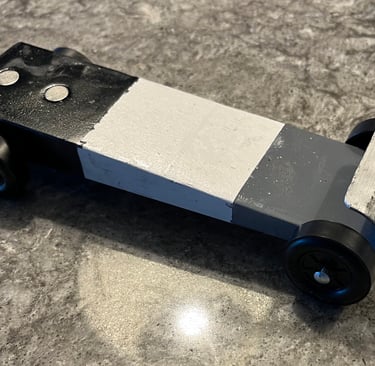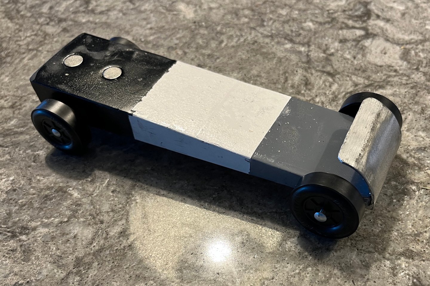 To make sure we didn’t have any catastrophic failures we epoxied the axels in place. The race was scheduled for 6:00 PM. At 5:00 PM I realized that one of the wheels had been epoxied to the car. Fortunately we had just enough time to fix it.