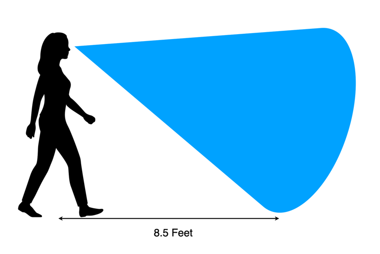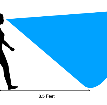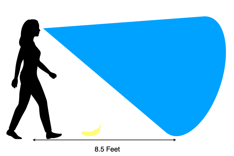 When we turn a corner we’re still looking about 8.5 feet ahead. But unlike when we’re walking on the straightaway, we haven’t already seen what’s at ground level.