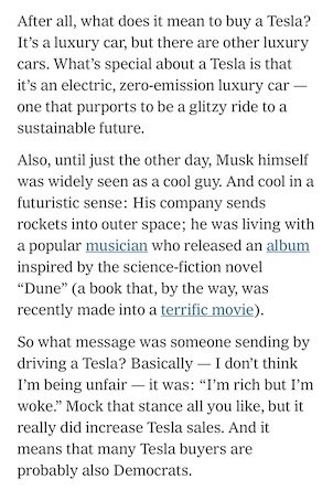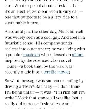 There was a really interesting piece in the paper. It was about Tesla stock price. But it went deeper in terms of what it means to own a Tesla.